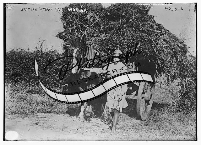 British woman farm worker,Horse drawn wagon,Farmer,Bain News Service