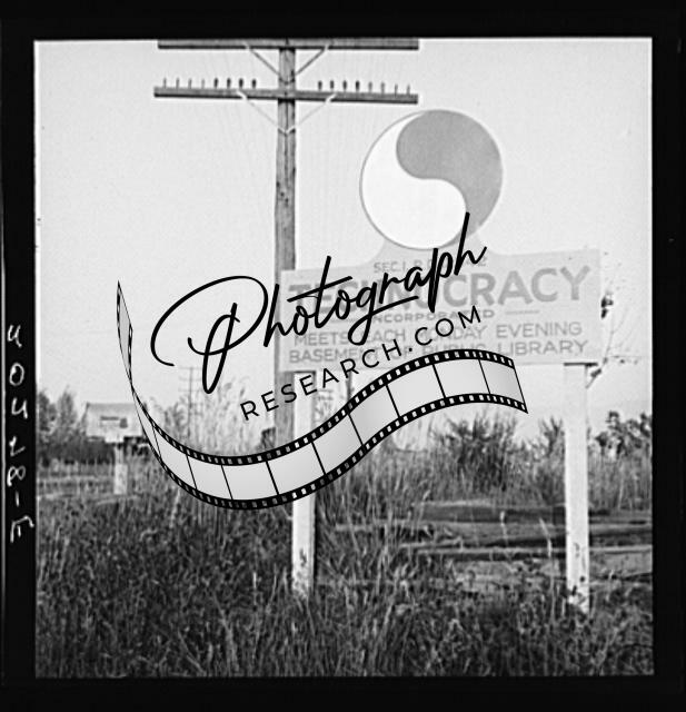 Title: Sign of service station, U.S. 99. Hop pickers are wanted for four big growers of the area three weeks before opening season. They also advertise in newspapers including San Francisco newspapers, 450 miles away. Josephine County, Oregon