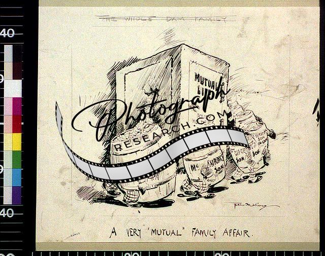 A very 'mutual' family affair,Mutual Life Insurance Company,Barrels,Money,c1905