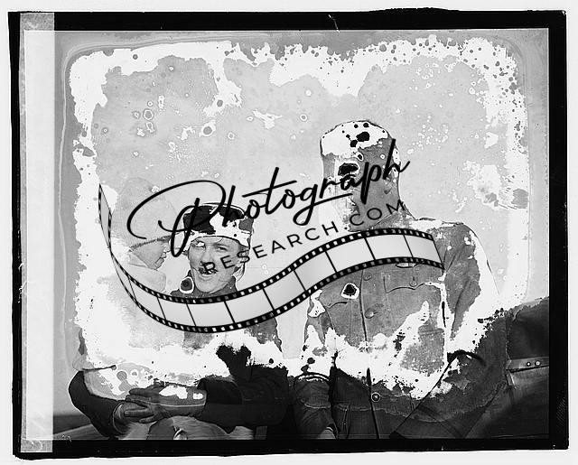 This glass negative might show streaks and other blemishes resulting from a natural deterioration in the original coatings.