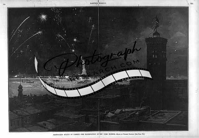 Bartholdi's Statue of Liberty,Illumination,New York Harbor,Fireworks,1886
