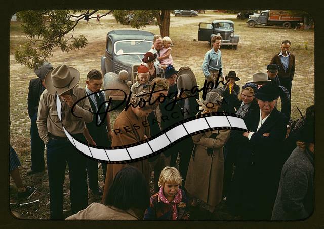 Serving up barbeque,automobiles,Pie Town,New Mexico,Fair,NM,Russell Lee,1940