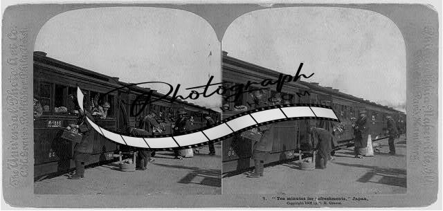 Photo of Stereograph,Japan,Refreshments,Railroad,RR,Food Vendor,Train,c1902