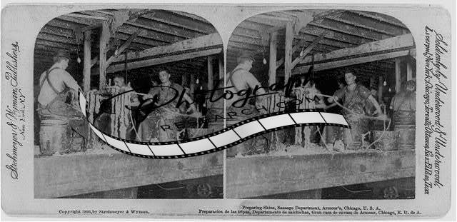 Photo of Stereograph,Preparing Skins,Sausage Department,Armour's Chicago,IL,1893