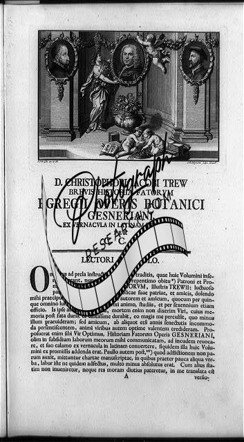 Medallion,Christoph Jacob Trew,Conrad Gesner,cherubs,plants,text below,1751