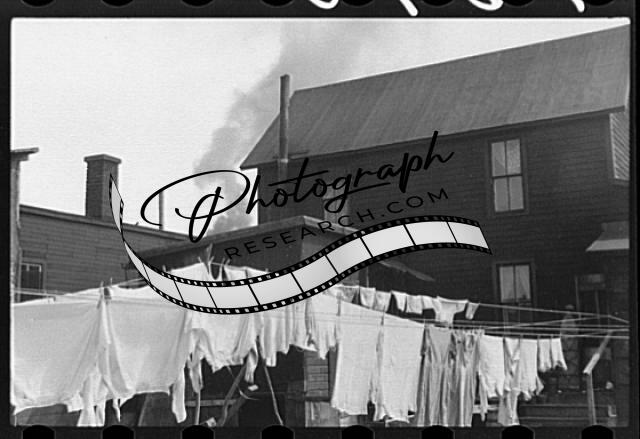 Shacktown runs along the banks of a polluted stream,Dubuque,Iowa,IA,1940,FSA,24