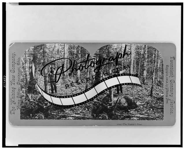The hunter's prize,downed moose,c1903,Moose Hunting,Reproduction