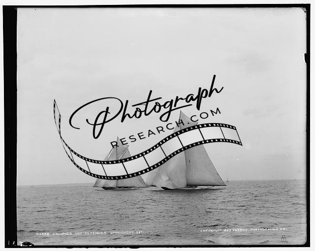 Columbia,Defender,spinnakers set,sloop,yachts,sailing,boats,ships,regattas,c1899