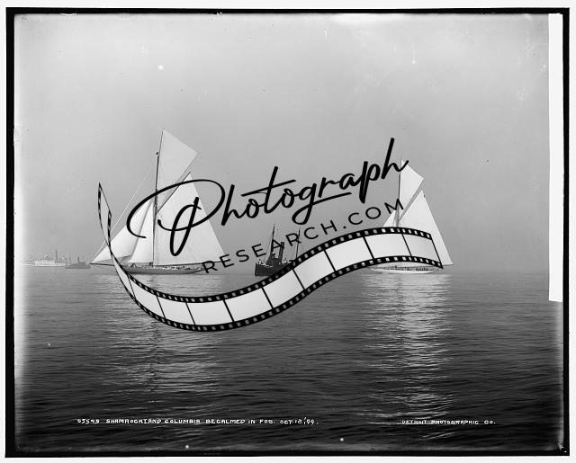 Shamrock I,Columbia,becalmed,fog,America's Cup Races,regattas,yachts,boats,1899
