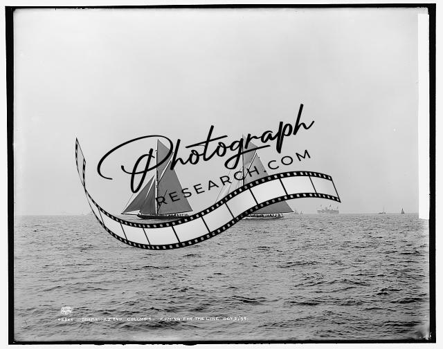 Shamrock I,Columbia coming for line,sloop,yacht,America's Cup Race,boats,1899 1