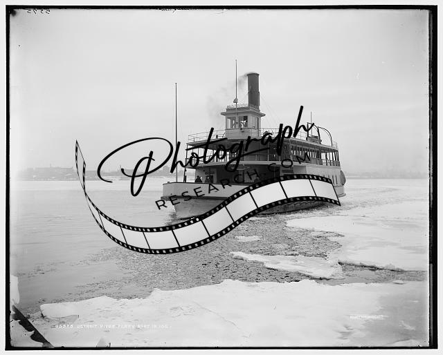 Detroit River ferry boat,ice,Excelsior,water transportation,Michigan,MI,1880