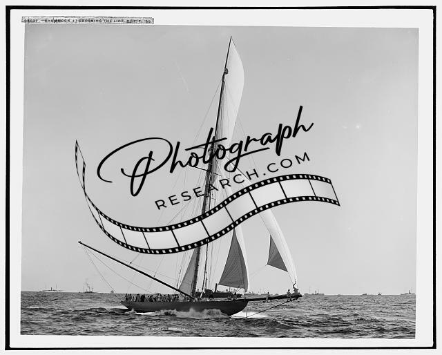 Shamrock I crossing line,America's Cup Races,regattas,boats,sailing,ships,c1899