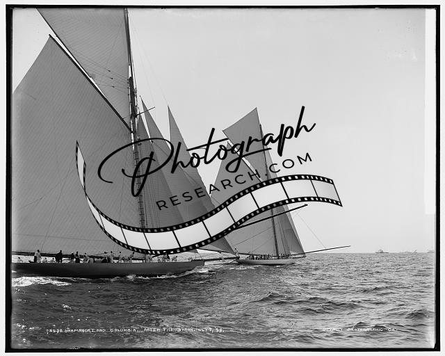 Shamrock I,Columbia after start,America's Cup Races,regattas,boats,sailing,1899