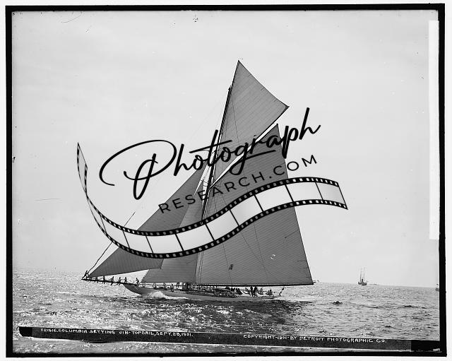 Columbia setting jib-topsail,sloop,yachts,America's Cup Races,regattas,c1901