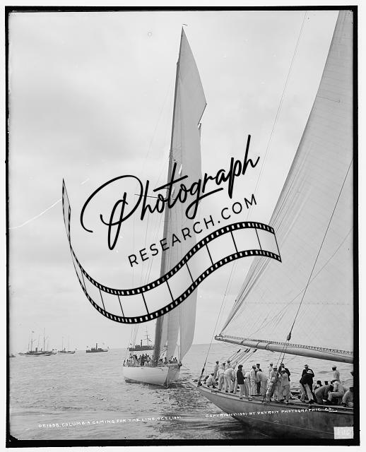 Columbia coming for line,America's Cup Races,regattas,sloop,yachts,sailing,c1901