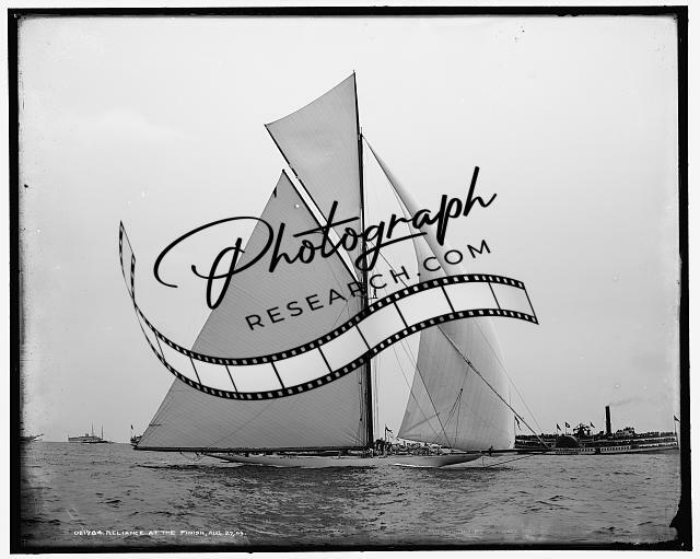 Reliance,finish,regattas,ships,sloop,yachts,America's Cup races,sailing,c1903