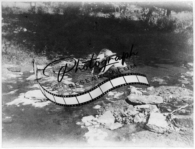 Harvey W. Wiley family,Sioux City,Iowa,2 children playing in creek,old farm,1890