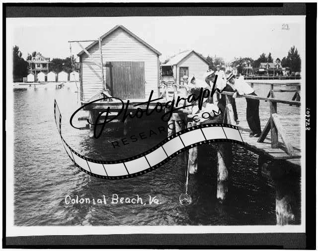 Colonial Beach,Virginia,VA,Resort,Boathouse,Fishing,People Crabbing from Pier