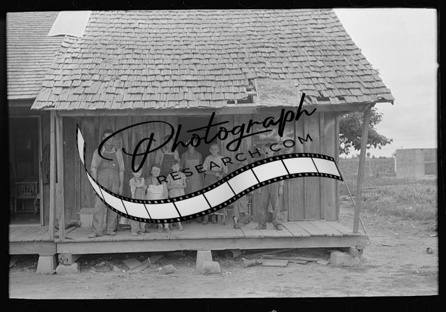 Sharecropper family on front porch of cabin,Southeast Missouri Farms,MO,FSA