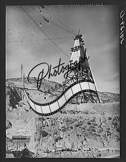 Title: Central tower from which materials used in construction of Shasta Dam are distributed. Shasta County, California