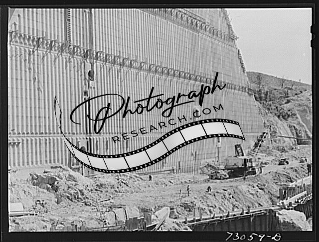 Title: Shasta Dam, Shasta County, California. Foot of the dam under construction