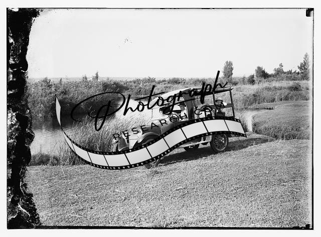 Man in car by body of water,Automobile,Middle East,Matson Photo Collection