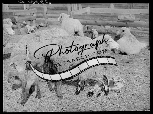 Title: Sheepherder with new born lamb and ewe in lambing shed. Dangberg Ranch, Douglas County, Nevada