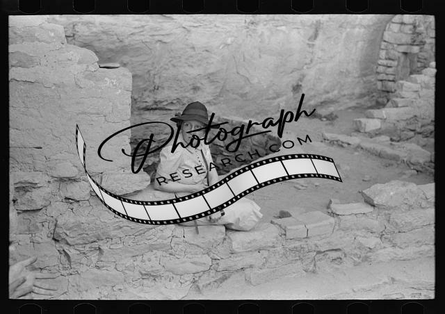 Tourists at cliff dwellings,Mesa Verde National Park,Colorado,CO,FSA,1939