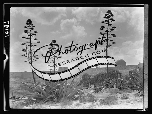 Golden Gate & east wall seen through group century plants,Jerusalem,Israel