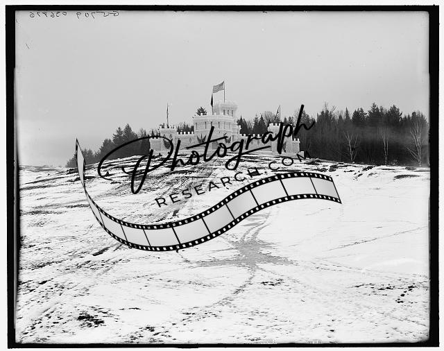 Midwinter carnival,ice fortress,thaw,snow,Upper Saranac Lake,New York,NY,1909