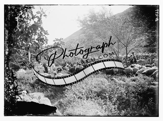 Caption from catalog: Costumes, characters, etc. Shepherd resting with flock at Ain Farah.