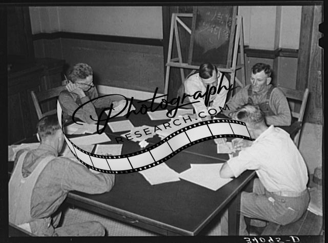 Title: FSA (Farm Security Administration) supervisor conferring with client about farm plan. Sheridan County, Kansas