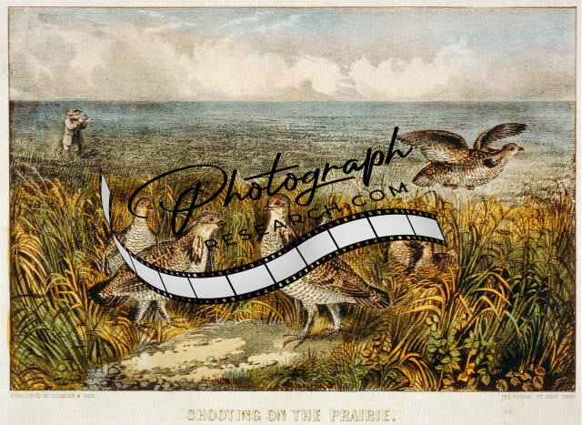 Shooting on the prairie,1856-1907,hunter,rifle,phaesants?,birds,Currier & Ives