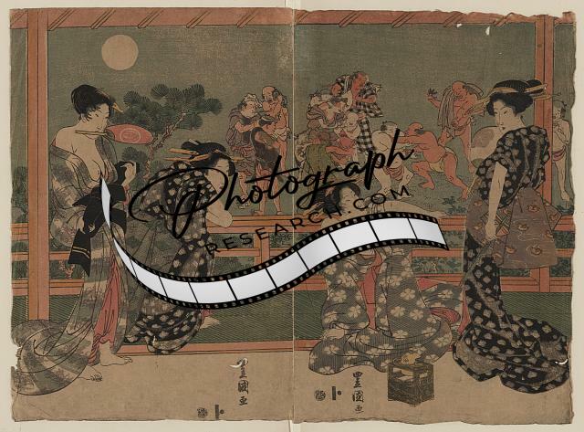 Tsukiyo ni sumo o miru onna,Toyokuni Utagawa,Photo of Ukiyo-e,Japan,c1820
