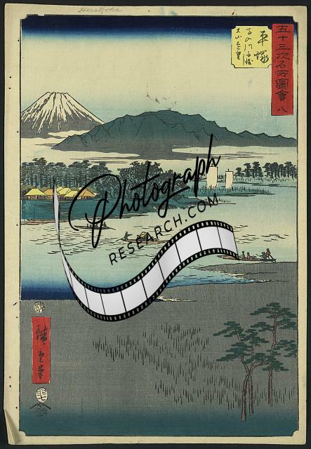 Shimada,Hiroshige Ando,Photo of Ukiyo-e,Japan,Pilgrims,Tokaido Road,River,c1855