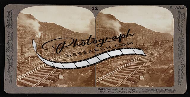 Steam-shovel and triped drills deepening canal prism in 70 ft. berm, Culebra Cut
