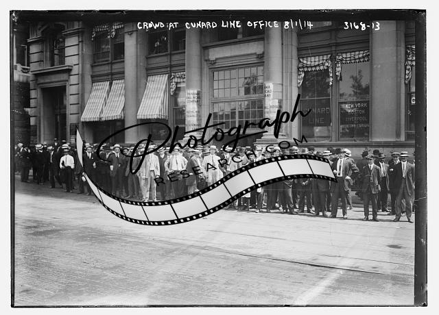 Crowd at Cunard line office,August 1,1914,Bain News Service,windows,men