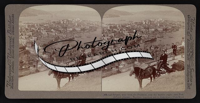 Bergen, west from the Floifjeld, over the harbor (right) and Pudefiord (distant)