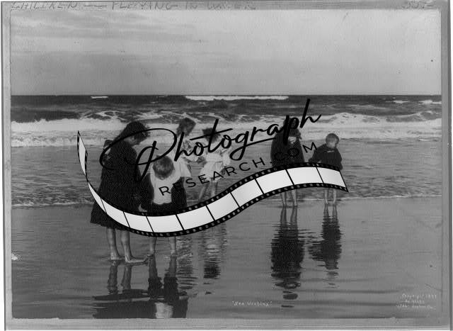 Sea Urchins,Children at edge of water on ocean beach,c1897,Playing Outdoors