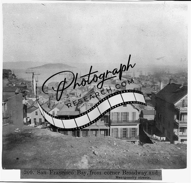 San Francisco Bay,from corner of Broadway,Montgomery Streets,California,1866,CA