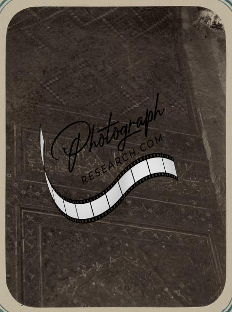 Title Translation: Antiquities of Samarkand. Inner courtyard of the Shir Dar Madrasa (western side). Ornamentation carved into the marble slab