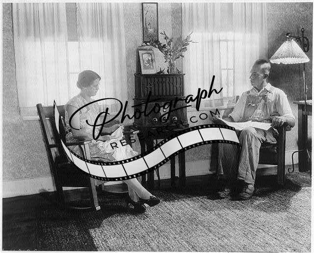 Farm family,Rocking Chairs,Listening to radio,Coveralls