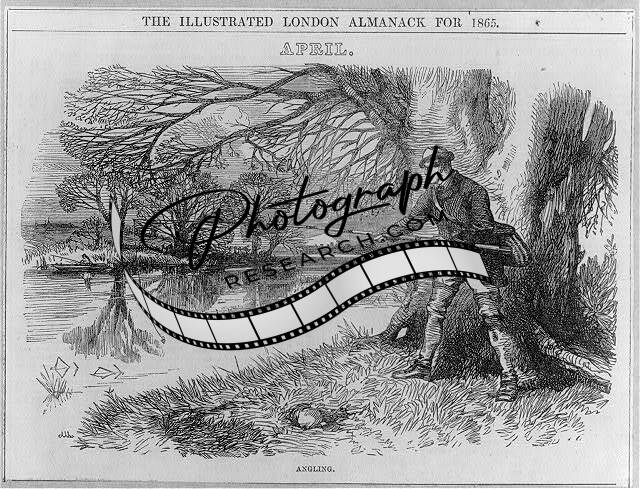 Bass Fishing,2 men in a boat,long fishing pole,1854