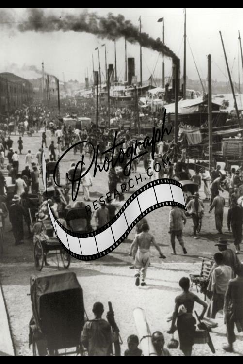 China - Kiangsu province - Shanghai. The Bund,crowded dock scene,1890-1923