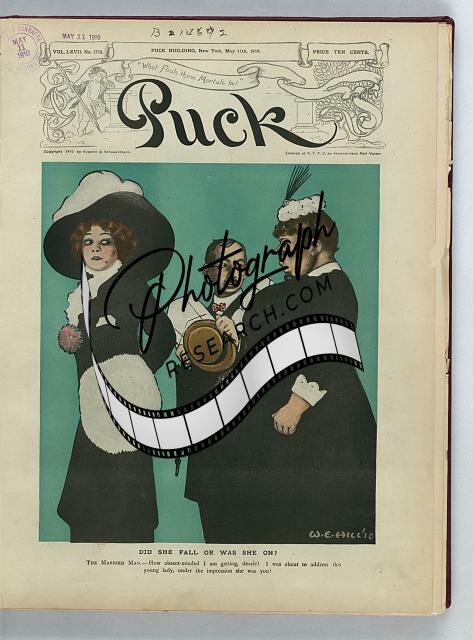 Photo of Puck,Did she fall or was she on?,Spouses,Absent Mindedness,1910,Hill
