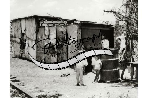 Ramshackle Shelter,Railroad Tracks,Poverty,Children,Mexico,Huts,1964