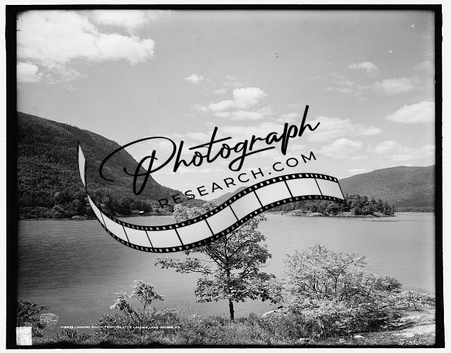 Looking south,Huletts Landing,mountains,water bodies,Lake George,New York,c1907