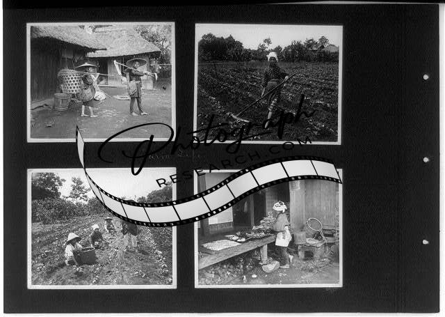 Farm life in Japan,Man,woman,farm tools,children,cleaning vegetables,1915-1925