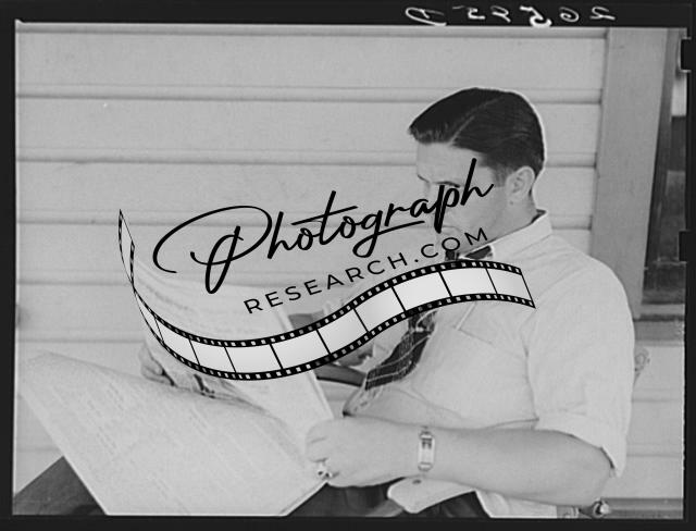 Title: Clifford Shorts and family reading about homes for workers. Aliquippa, Pennsylvania