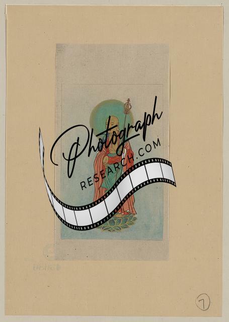 Religious figure,Buddha,lotus,holding staff,green halo behind head,Japan,1878